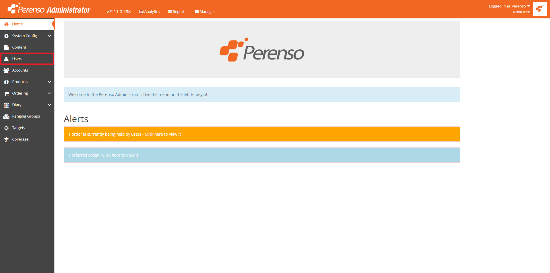 - To access the User account profile click on Users from the left menu.