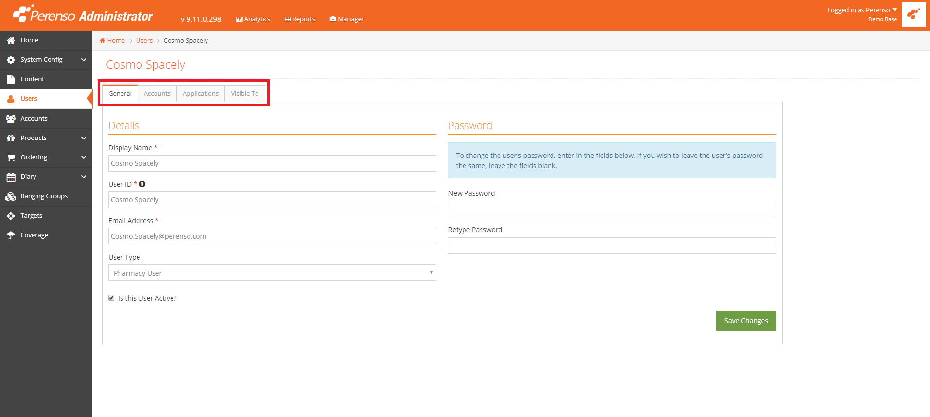 - General: You can make changes to a users details such as their display name, login/user ID, linked email address, password and setting the account to be active or inactive.