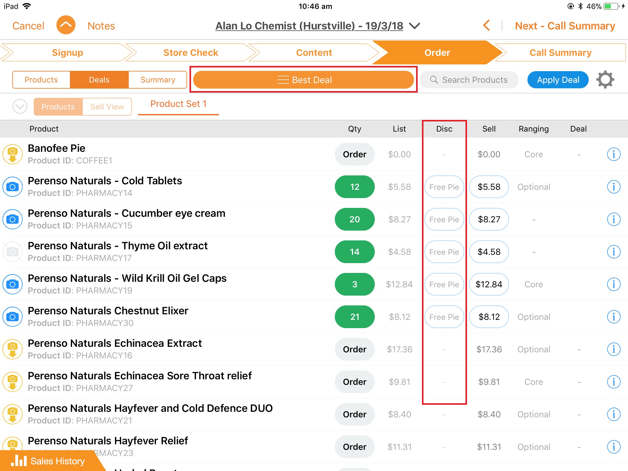 If you would like more information on this step, you can view the article Taking an Order. - Apply the deal