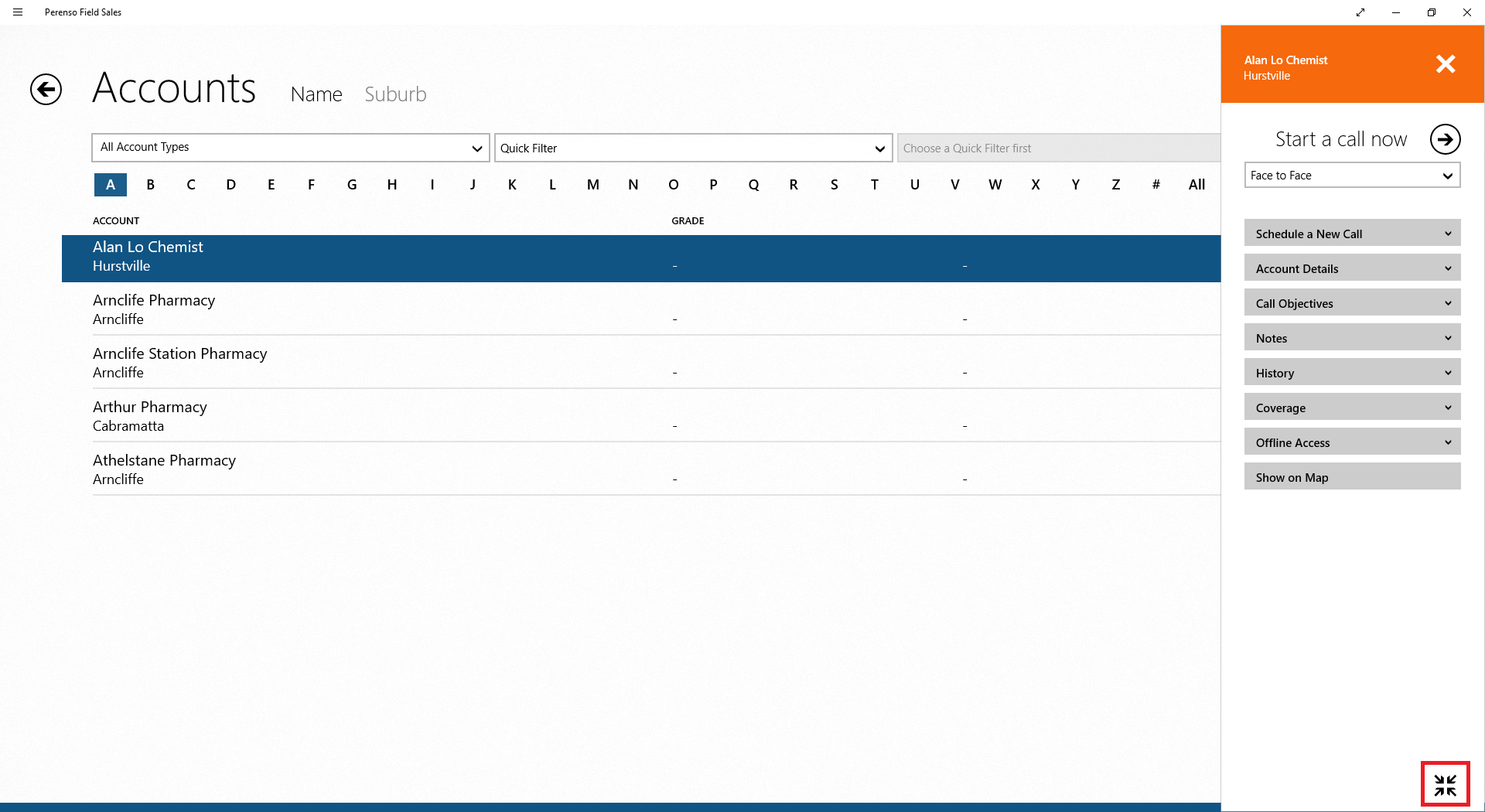 Shows the most recent incomplete objectives for the account. Pressing on Add will an objective for the account whilst tapping Manage will load all of the accounts call objectives.