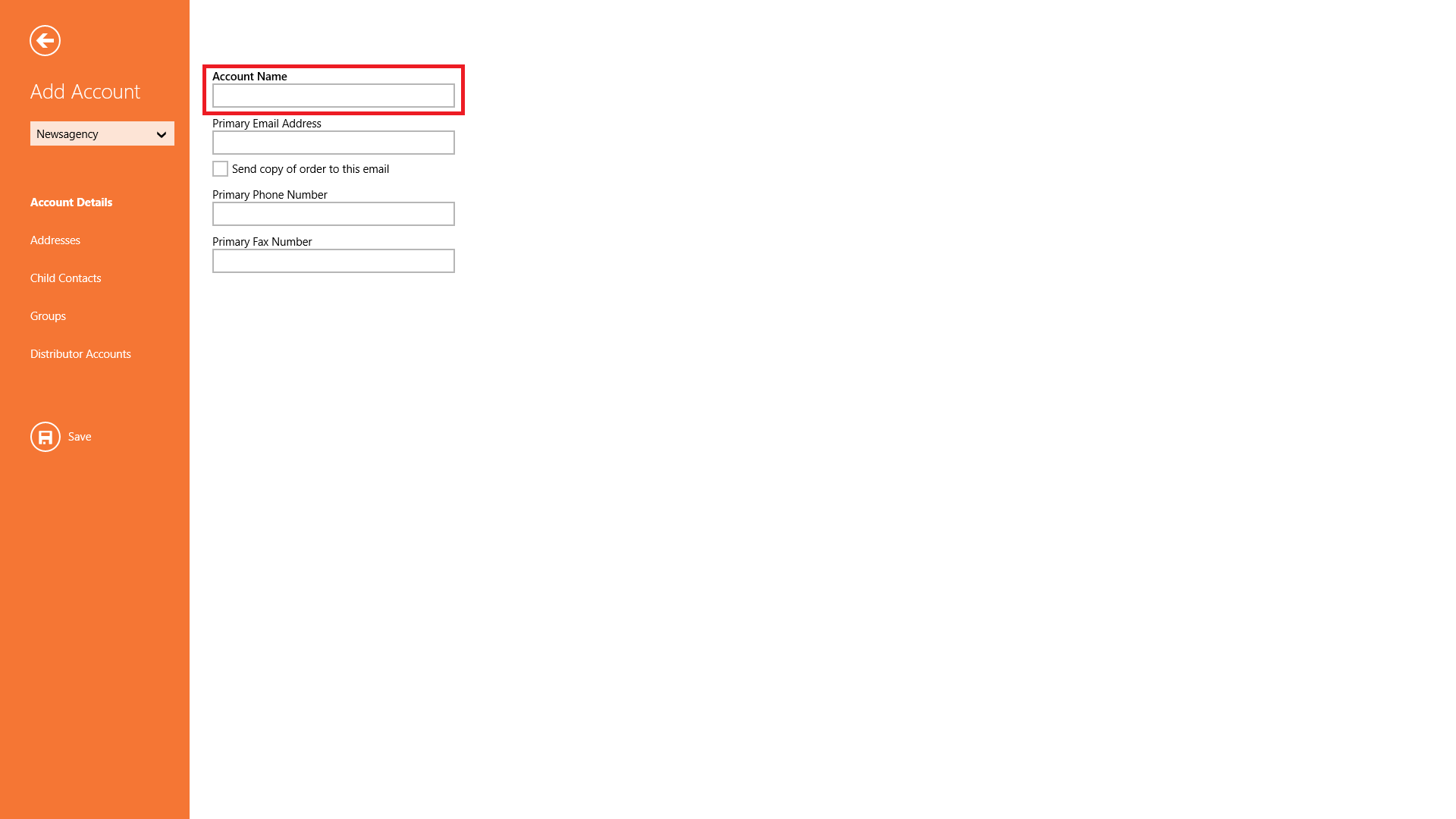 This is important because the one you choose will load the template designed for that Account Type and so it cannot be changed to a different one after being saved. - Type in the Account Name.