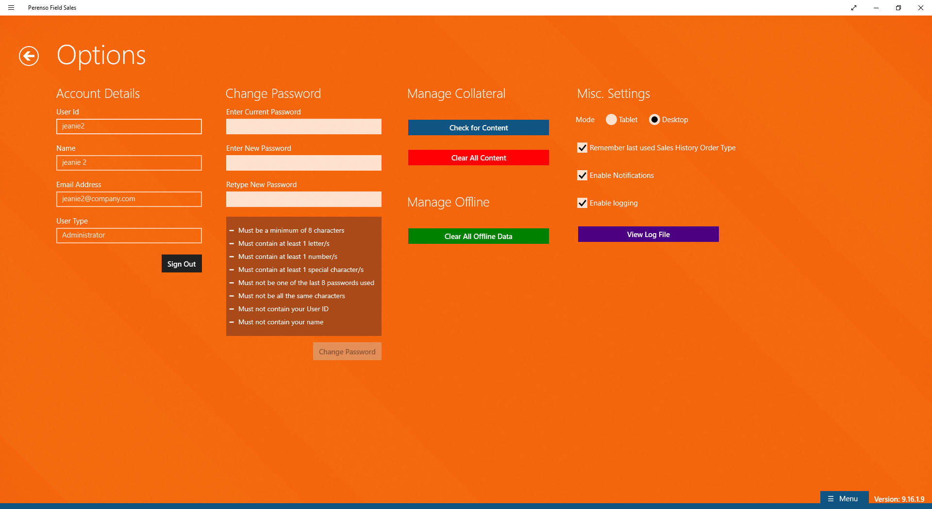 With the new update, password rules can be set up by the Perenso Administrator.