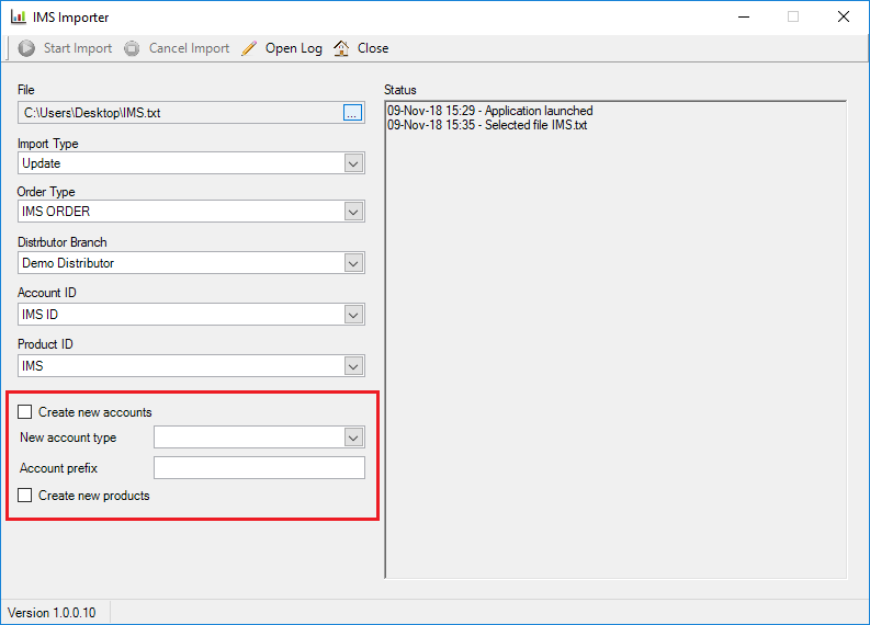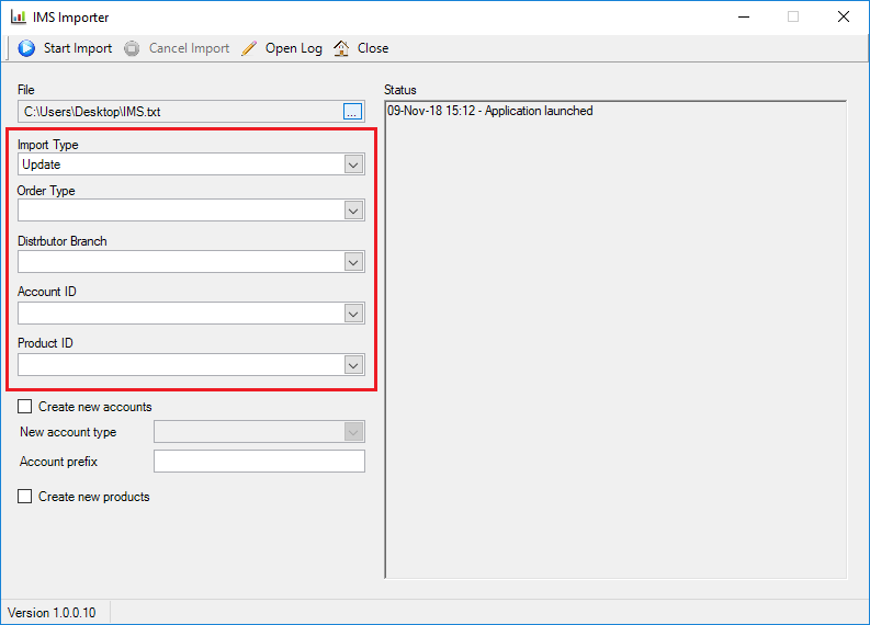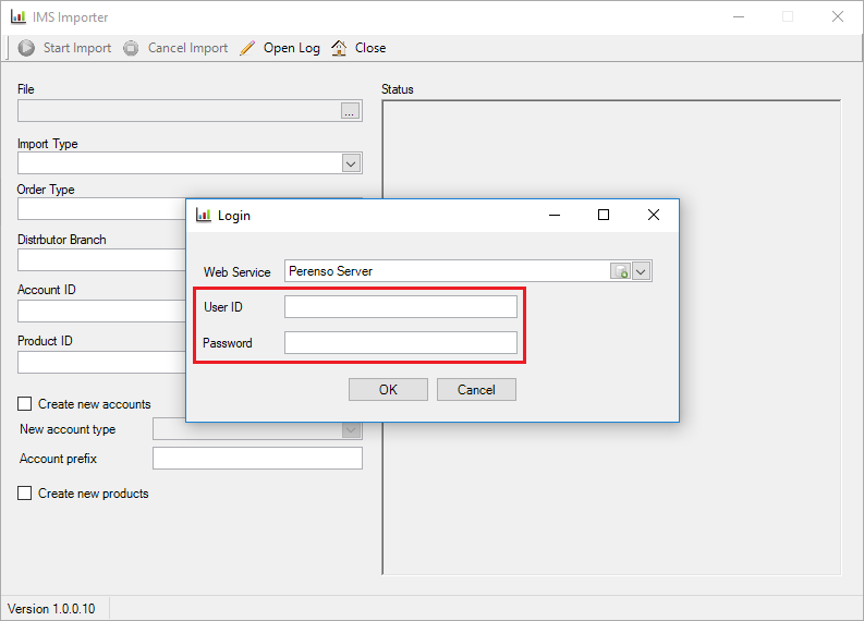 - Create New Products (defines if a new product will be created if a product exists in the IMS file but cannot be found in Perenso) - When you have the import settings configured, click Start Import.